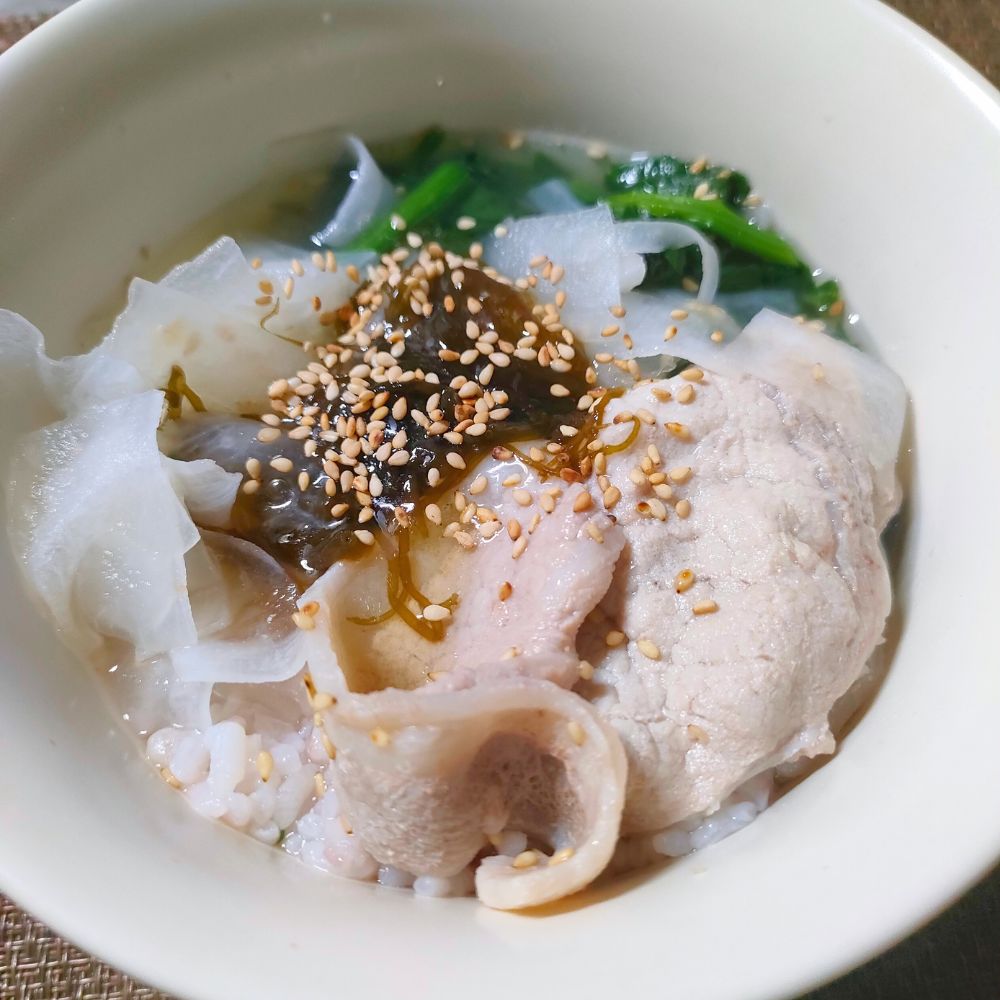 私が作ったのは、米の娘ぶたのロースしゃぶしゃぶ用を使ったヘルシーだけど満足感たっぷりの一汁三菜ボウル。