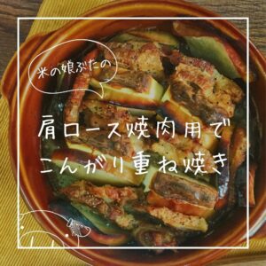 米の娘ぶた肩ロース焼肉用で作る、こんがり重ね焼き